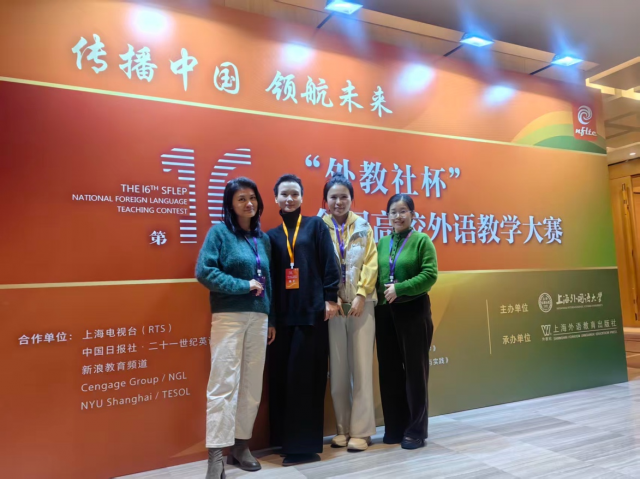 近日,第十六届“外教社杯”全国高校外语教学大赛全国总决赛圆满落幕。我校外国语学院教师团队在激烈角逐中表现优异,由王南老师担任主讲,团队成员付云珊、张洁琼、肖琳协同配合,最终斩获综合组全国三等奖,为江西省代表队在本届大赛中交出了一份亮丽答卷。