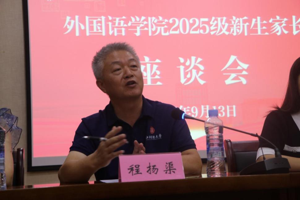 院党委副书记程扬渠则从学生管理与成长服务的角度出发,介绍了学生工作的整体情况。他围绕学生的日常教育管理、党团组织建设、奖助学金政策、心理健康关怀、职业生涯规划与就业指导服务等方面进行了细致说明。程书记强调,学院将努力为每一位学生提供安全、舒适、积极向上的学习生活环境,并通过丰富的党团活动和社会实践,吸纳和培养优秀人才,全面促进学生的综合素质提升。