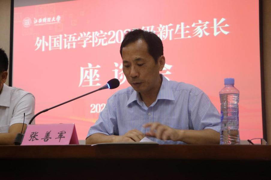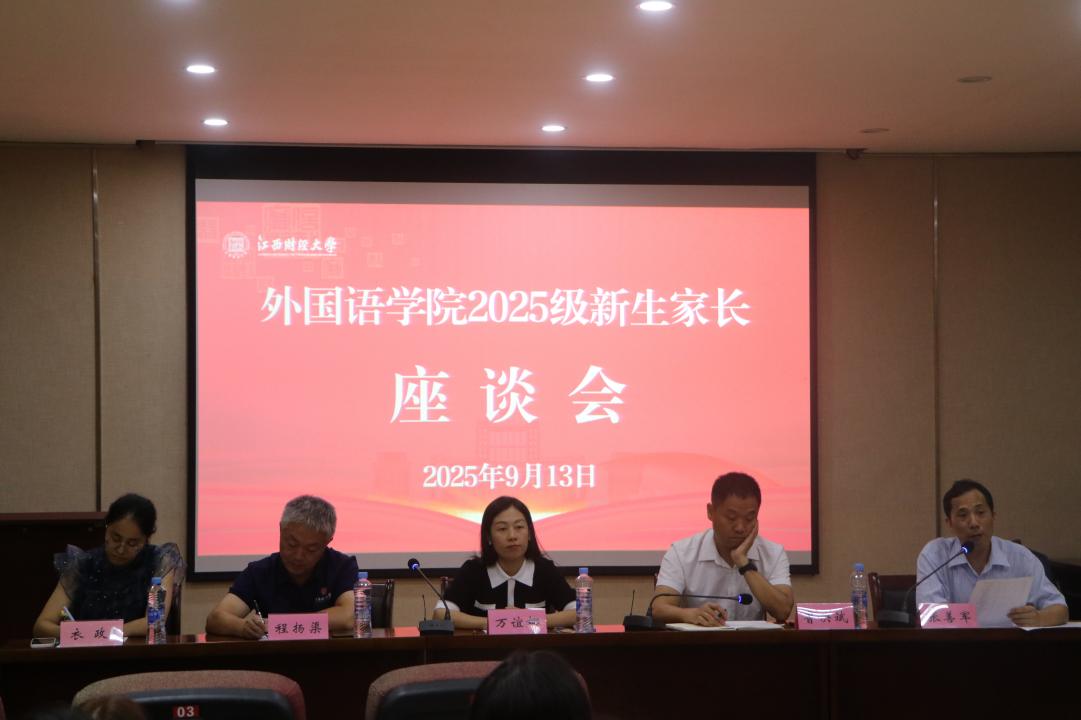 2025年9月13日,江西财经大学外国语学院2025级新生家长会在英庐Y119隆重举行。本次家长会旨在加强家校沟通,凝聚育人合力,共同助力新生健康成长与全面发展。会议由学院党委书记鲁决斌主持。