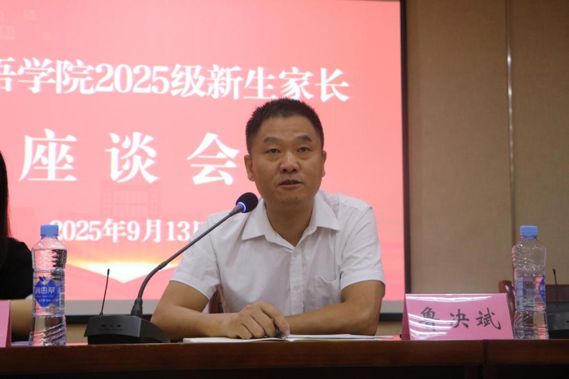 会议伊始,鲁决斌书记对各位新生家长的到来表示热烈欢迎和衷心感谢。他简要介绍了家长会的议程,并代表学院表达了对2025级新生的美好祝愿,希望他们能在江西财经大学外国语学院度过充实、愉快、收获满满的大学时光。