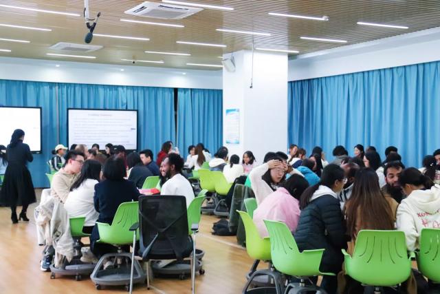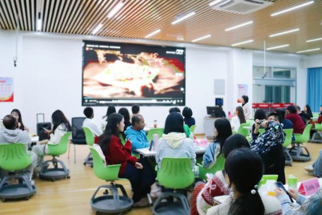 第二期活动在主持人王芙蓉老师热情洋溢的开场中拉开帷幕。随着美食视频的播放,大家在热闹欢快的音乐声中放松下来,挥动手臂,跟随节拍跳起了舞蹈。一场简单却有趣的小互动,让来自不同文化背景的参与者们迅速融入,笑声与掌声交织成温暖的序曲。
