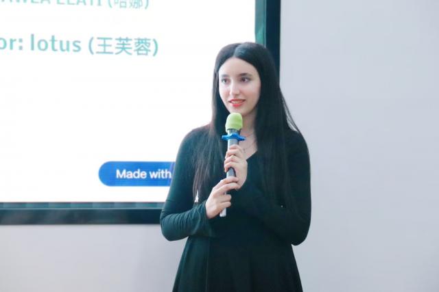 随后,来自摩洛哥的留学生khawla为我们带来了一场充满异域风情的分享。她讲述了国菜“塔吉锅”如何利用三角锥形锅盖锁住食物原味,来体现沙漠民族的生存智慧;介绍了每周五家庭团聚必吃的“库斯库斯”;更分享了摩洛哥著名的敬客之饮——薄荷茶的冲泡与饮用礼仪。一道菜,一杯茶,一段故事,Khawla用食物搭建起一座连接北非与东方的文化桥梁。