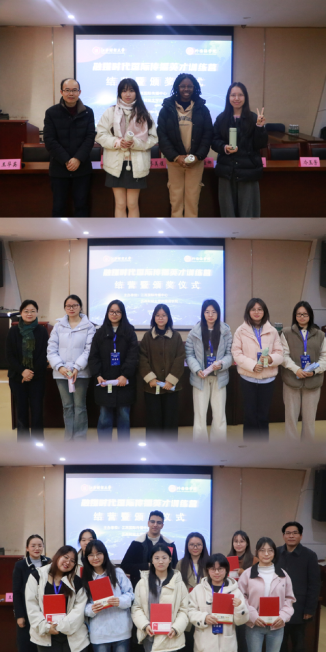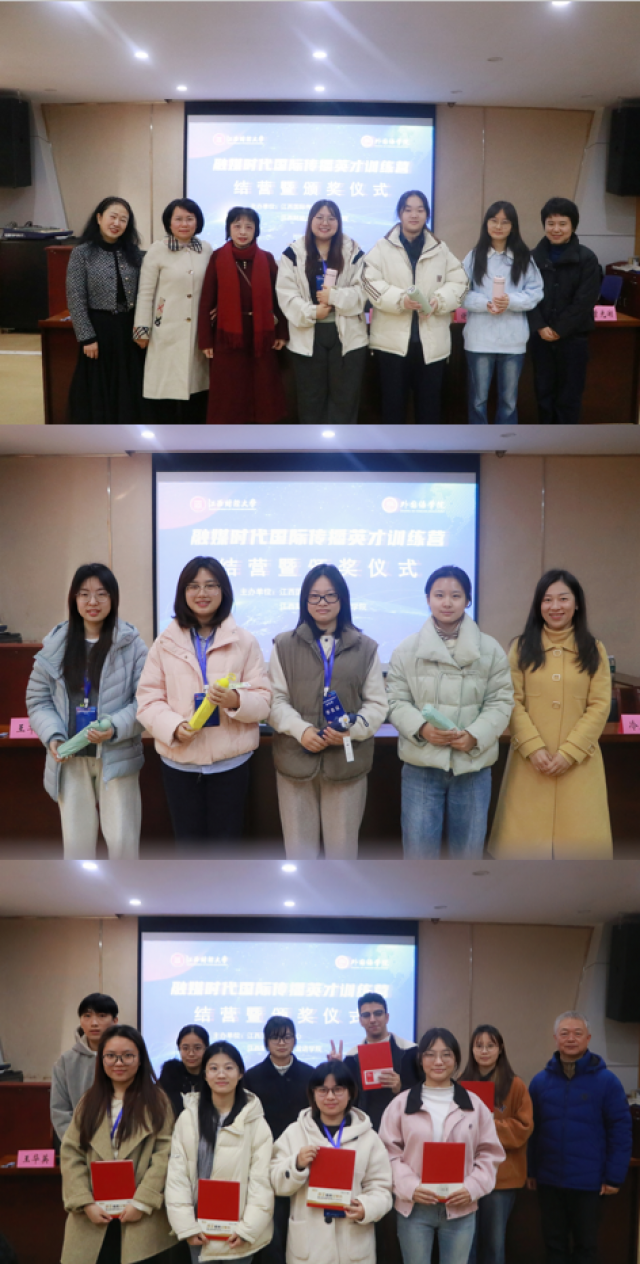 1月16日,由江西国际传播中心与江西财经大学外国语学院联合主办的“融媒时代国际传播英才训练营”在麦庐园校区顺利结营。江西国际传播中心副主任齐美煜,外国语学院院长万谊娜、党委副书记程扬渠出席结营仪式。学院指导教师、国际传播研究团队成员,以及全体参训学员共同参加,仪式由外国语学院副院长杜景平主持。