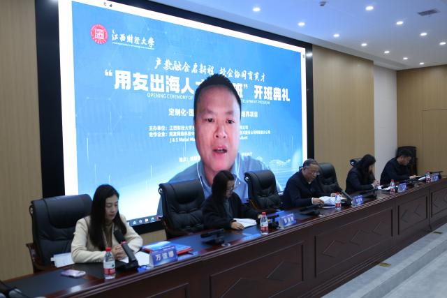 阙善栋代表学校致辞,向“培优班”开班表示祝贺,并向用友中东网络科技有限公司及生态合作伙伴鼎力支持致以感谢。他指出,当前数字全球化加速演进,中国企业“走出去”进入品牌与标准输出新阶段,培养“语言精、业务通、视野宽”的复合型出海人才,是高校的时代使命。江财始终秉承“信敏廉毅”校训,以数字化、绿色化、国际化开辟发展新空间。“培优班”全面创新了国际化人才培养模式,实现了课堂教学与海外实战的无缝对接。他寄语学员,要以“信”立身锚定时代坐标,以“敏”为学锻造复合本领,以“廉”正心涵养职业操守,以“毅”致远,拓展世界眼光,努力成为驰骋国际舞台的卓越人才。
