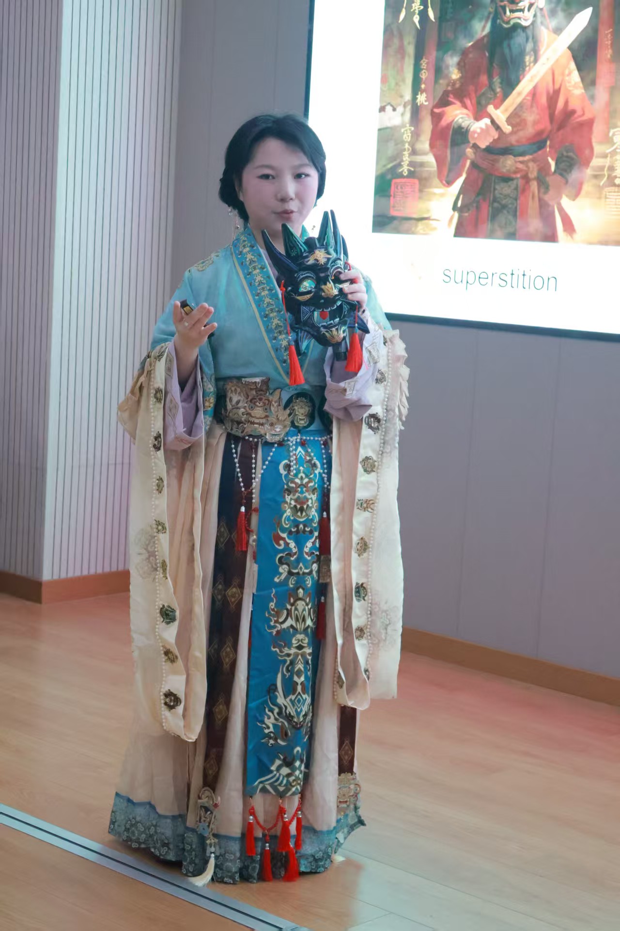 中国学生漆紫钰用流利英文,带大家走进傩戏的世界。这是中国最古老、最完整的古戏曲之一,源于远古祭祀仪式,集历史、民俗、宗教与戏剧于一体。戴面具表演的独特形式、古朴粗犷的动作风格、承载驱邪纳福寓意的剧目,都藏着中华民族的文化基因与精神密码。樟木面具、锣鼓唱腔、“口传心授”——“无傩不成村”。外国友人听得入迷:中国传统文化,真的又酷又深。